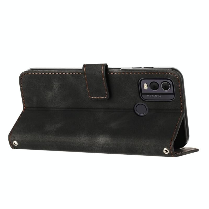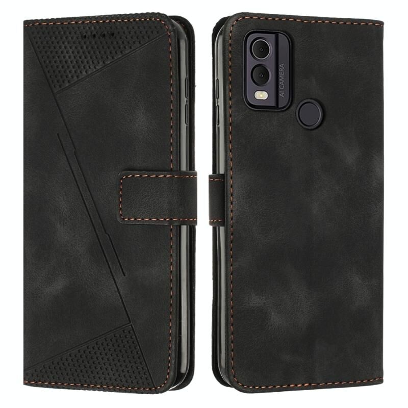 Για Nokia C22 Dream Triangle Δερμάτινη θήκη τηλεφώνου με κορδόνι (Μαύρο)