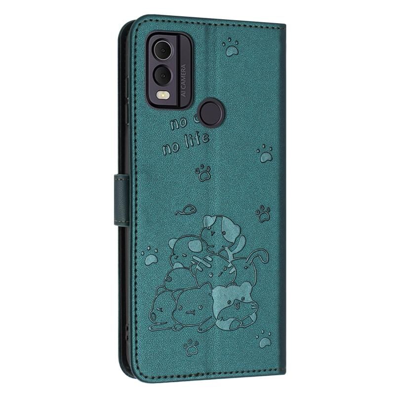 Θήκη δερμάτινη για Nokia C22 με ανάγλυφο σχέδιο γατάκι και κορδόνι (Μωβ)