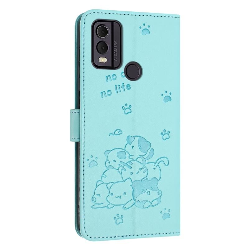 Θήκη δερμάτινη για Nokia C22 με ανάγλυφο σχέδιο γατάκι και κορδόνι (Μωβ)