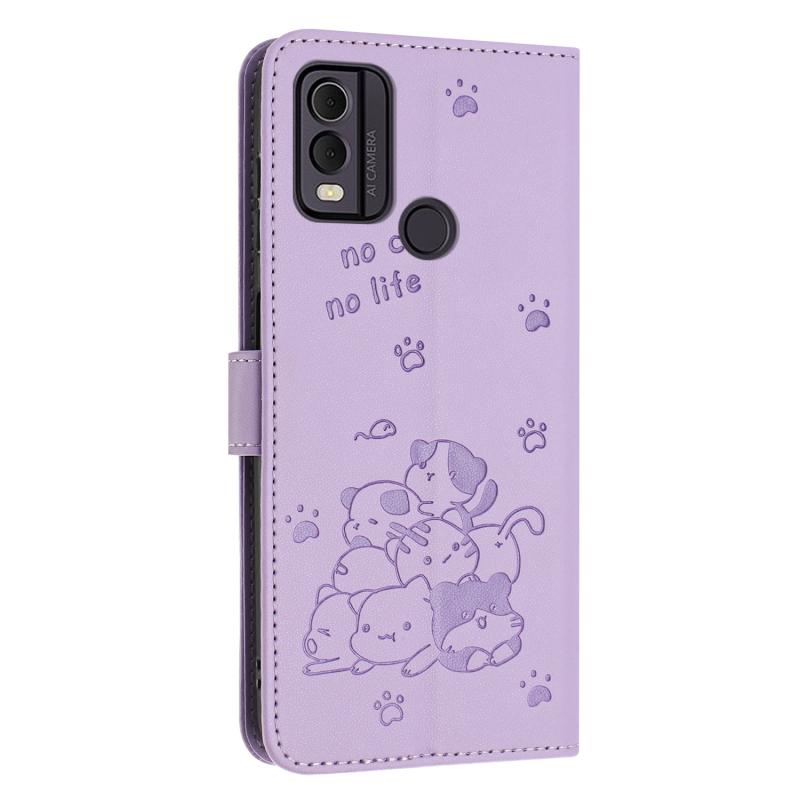 For Nokia C22 Embossed Kitten Phone Leather Case with Lanyard(Purple)