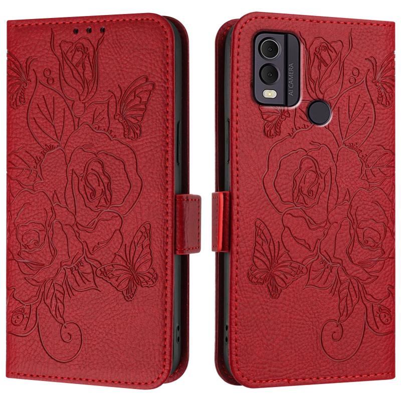For Nokia C22 Embossed Rose RFID Anti-theft Leather Phone Case(Red)