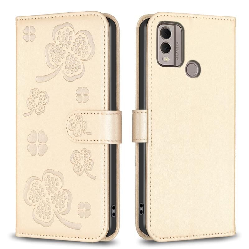Για Nokia C22 τετράφυλλο ανάγλυφη δερμάτινη θήκη τηλεφώνου (χρυσό)