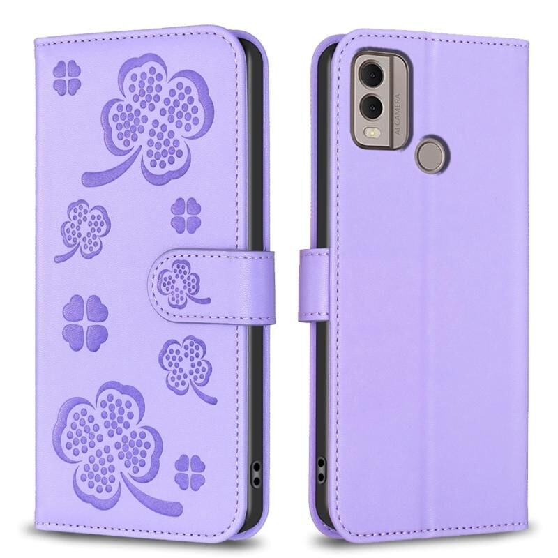 Για Nokia C22 τετράφυλλο ανάγλυφη δερμάτινη θήκη τηλεφώνου (μωβ)