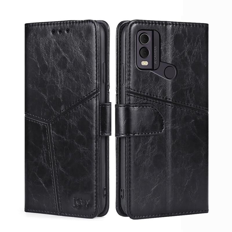 Για Nokia C22 Γεωμετρική ραφή δερμάτινη θήκη τηλεφώνου (μαύρο)