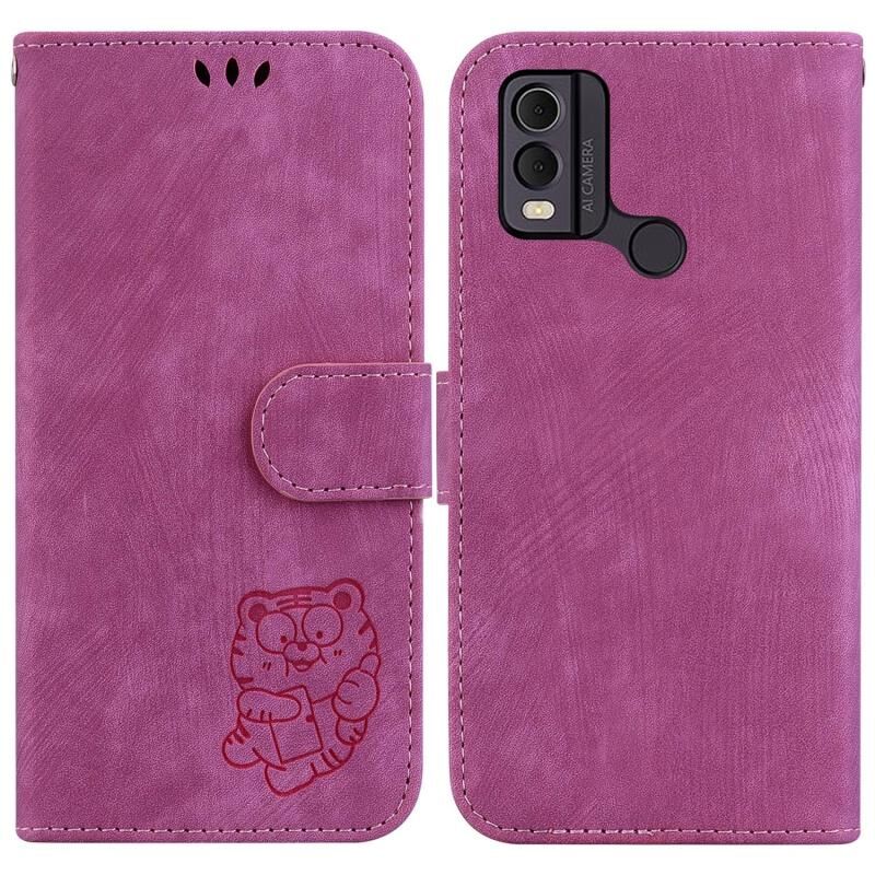 Θήκη τηλεφώνου από ανάγλυφο δέρμα για Nokia C22 Little Tiger (Πράσινο)