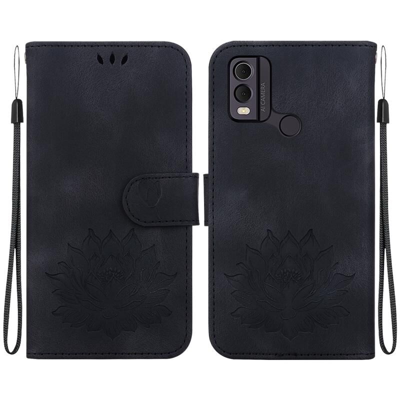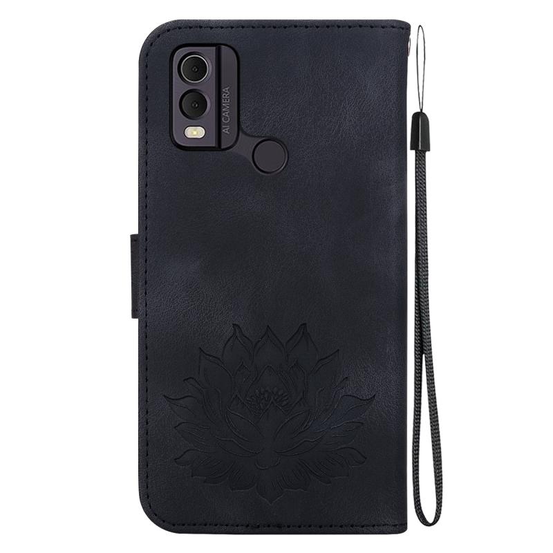 For Nokia C22 Lotus Embossed Leather Phone Case(Black)
