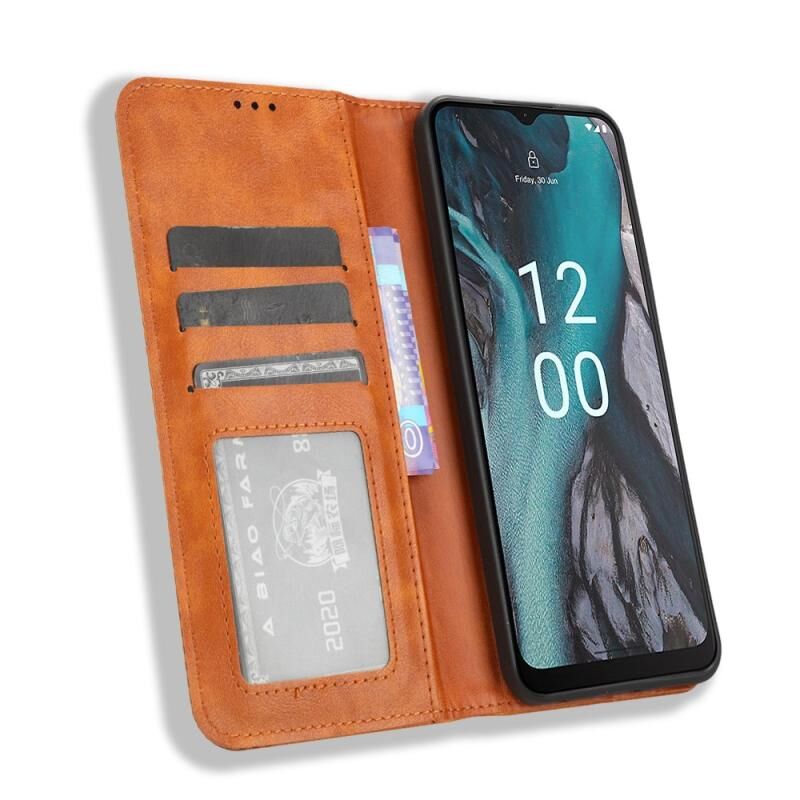 Για Nokia C22 Μαγνητική πόρπη ρετρό υφή δερμάτινη θήκη τηλεφώνου (καφέ)