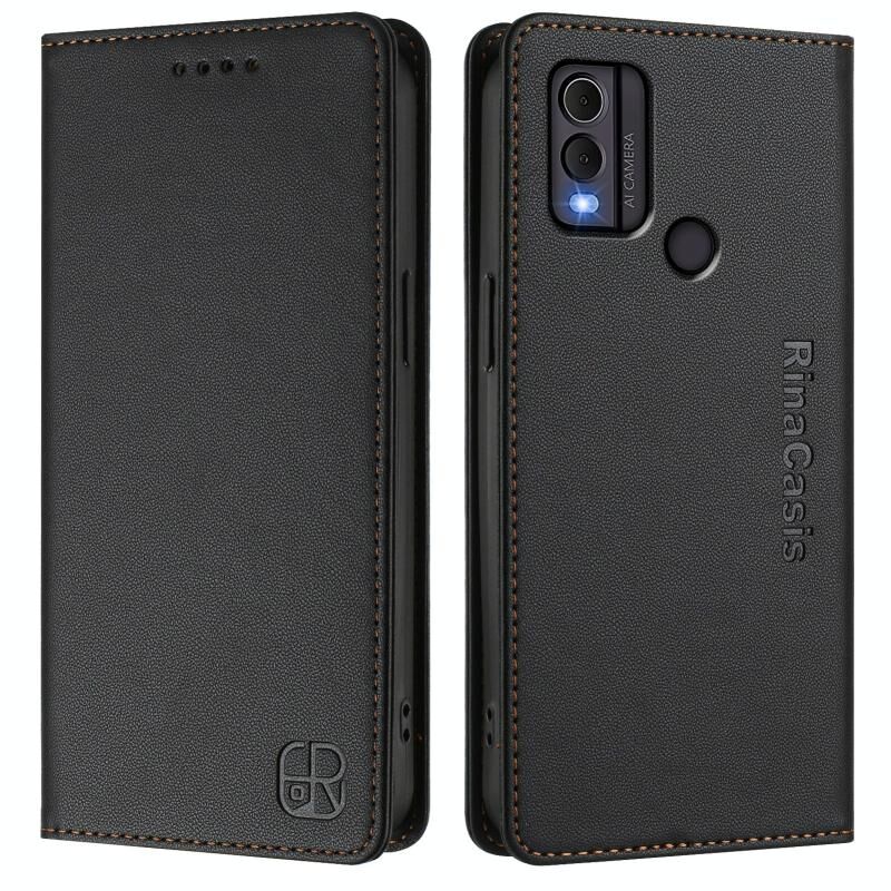 Θήκη τηλεφώνου από δέρμα με μαγνητική απορρόφηση και διπλή πτυχή για Nokia C22 RC01 (Μέντας Πράσινο)