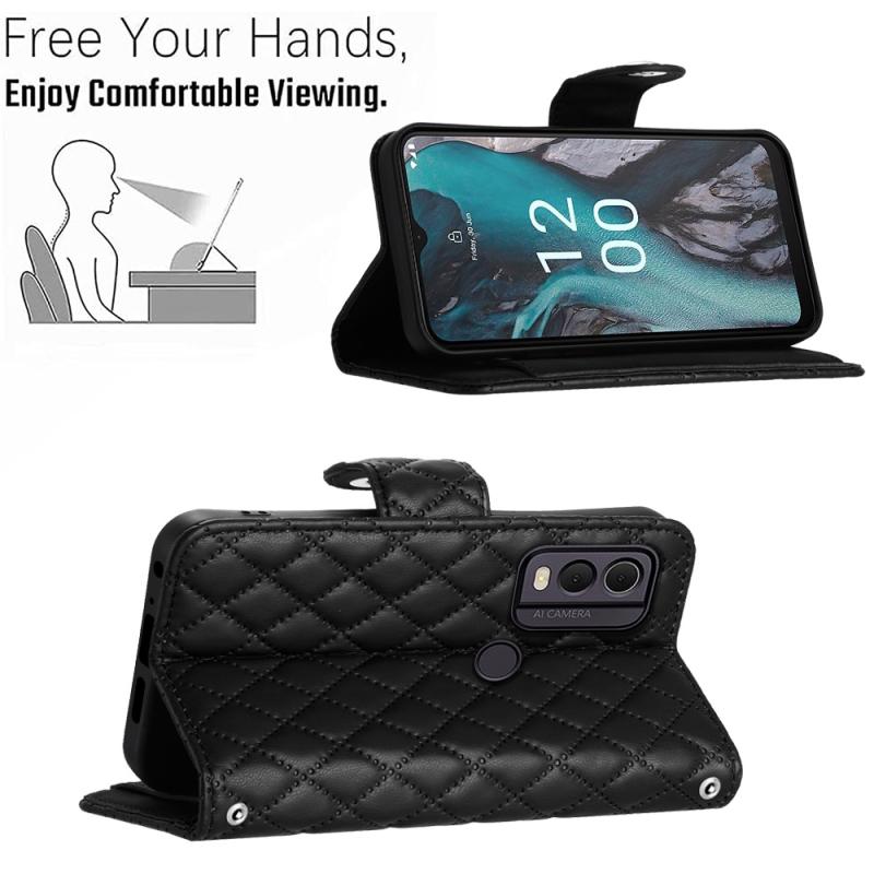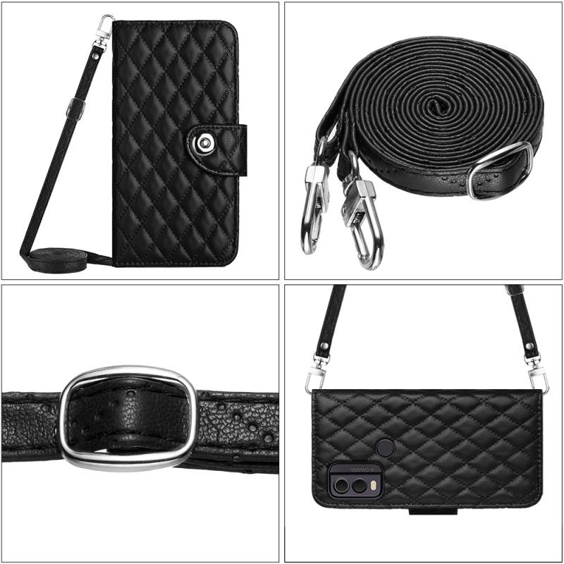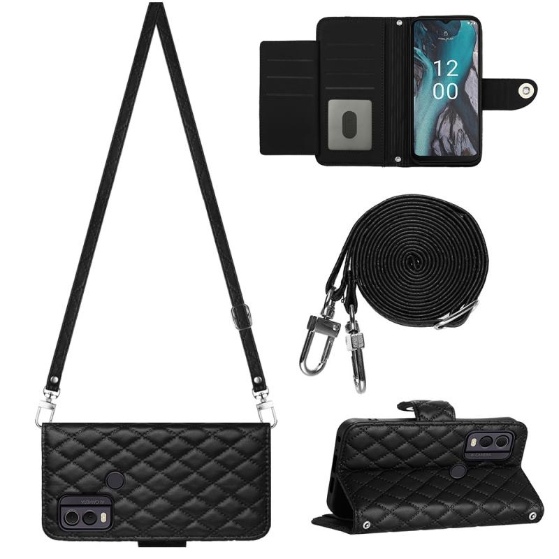 For Nokia C22 Rhombic Texture Flip Leather Phone Case with Long Lanyard(Black)