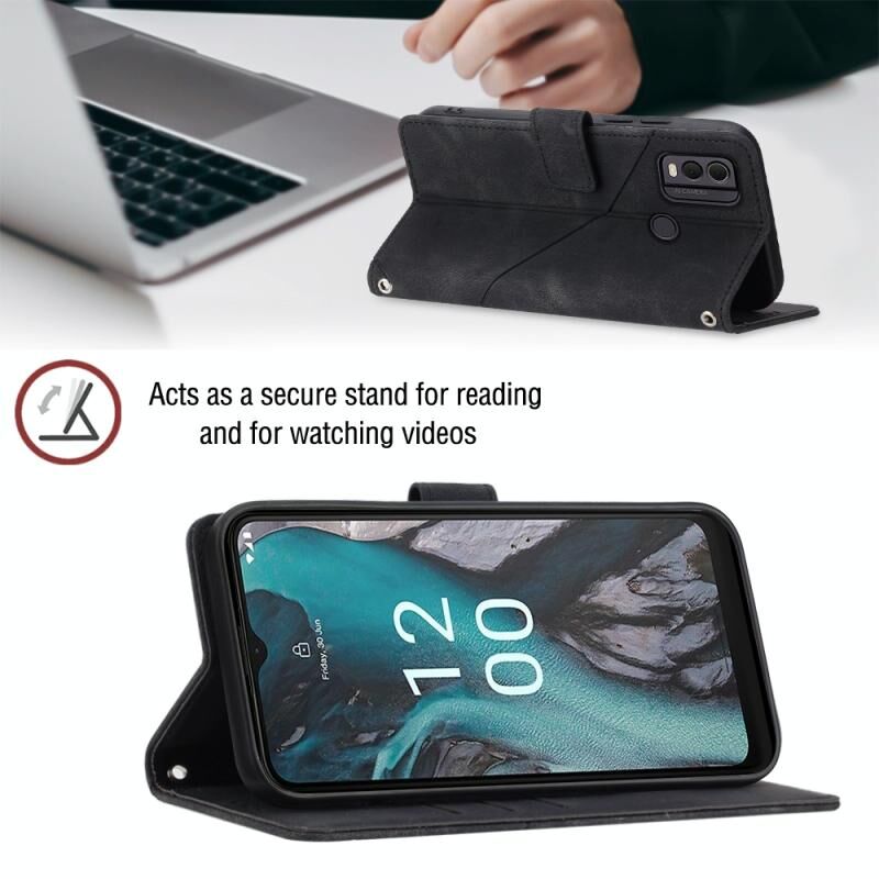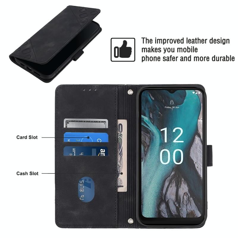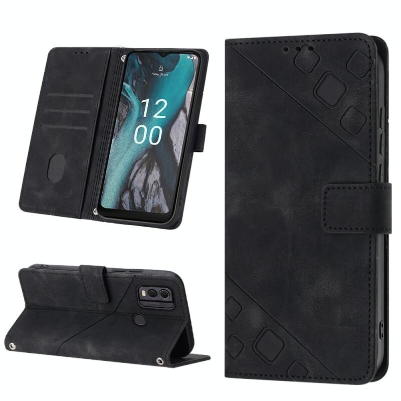 Για Nokia C22 Skin-feel ανάγλυφη δερμάτινη θήκη τηλεφώνου (μαύρο)