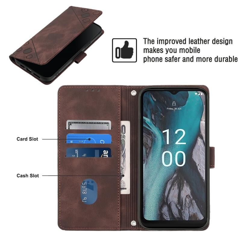 Για Nokia C22 Skin-feel ανάγλυφη δερμάτινη θήκη τηλεφώνου (καφέ)