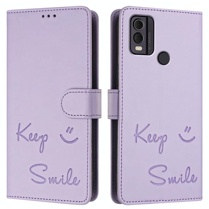 Για Nokia C22 Χαμόγελο ανάγλυφο RFID δερμάτινη θήκη τηλεφώνου (Light Purple)