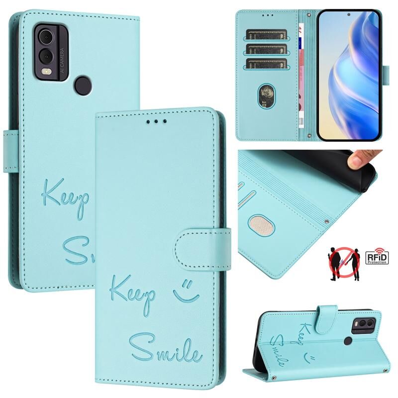 Για Nokia C22 Χαμόγελο ανάγλυφο RFID δερμάτινη θήκη τηλεφώνου (πράσινο χρώμα)