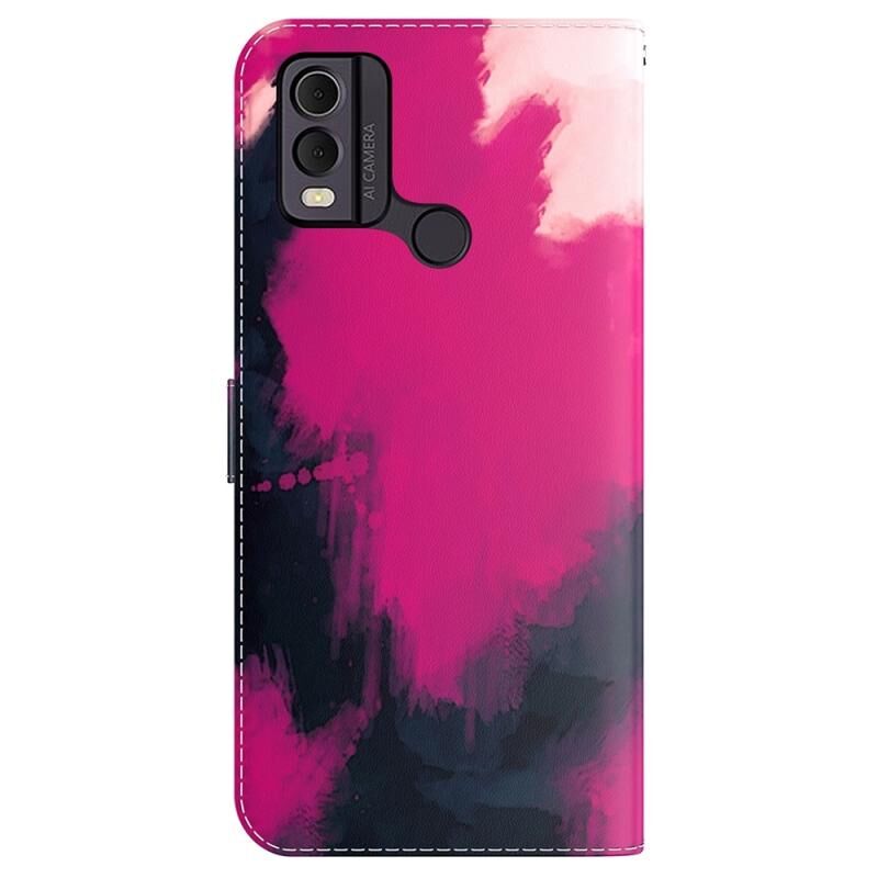 Για το Nokia C22 Υδατογραφία μοτίβο Flip δέρμα τηλέφωνο υπόθεση (Berry)