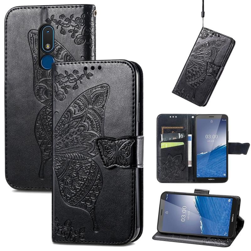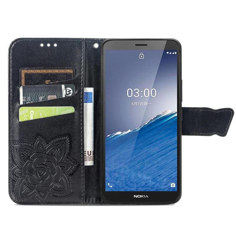 Θήκη τηλεφώνου από δέρμα με ανάγλυφο σχέδιο πεταλούδας και λουλουδιών για Nokia C3 (Μπλε)
