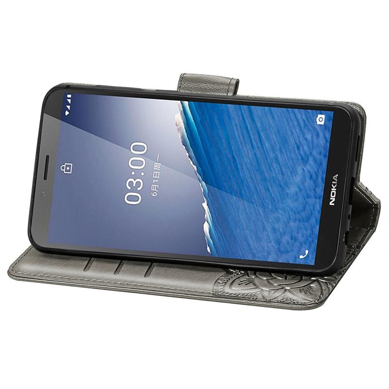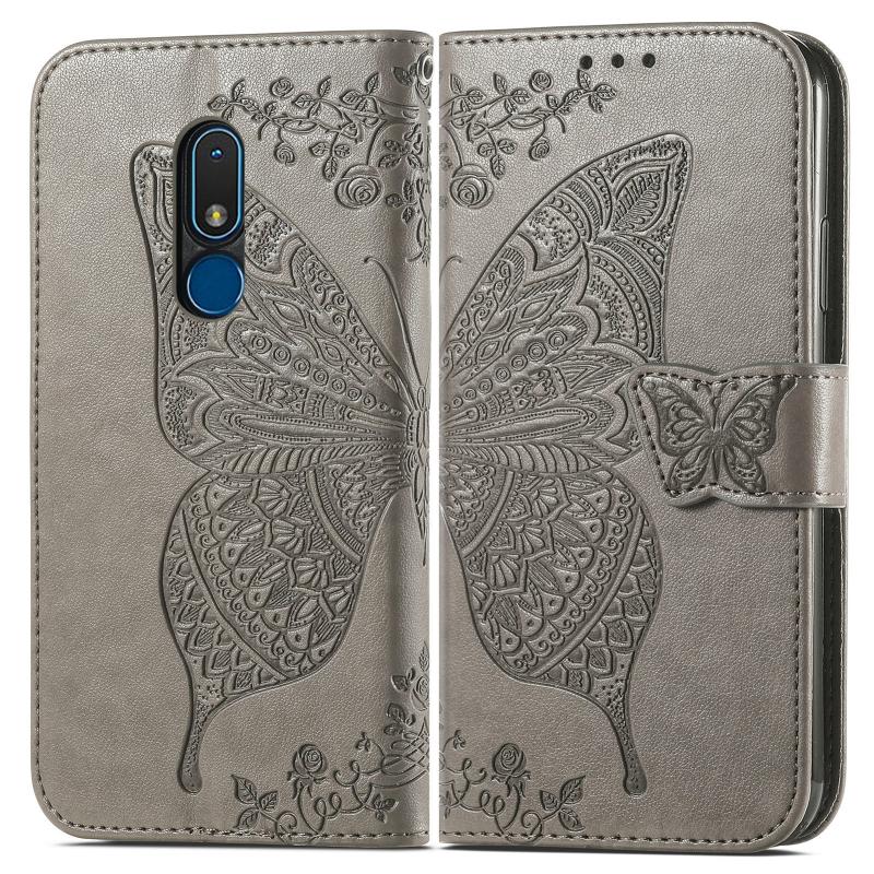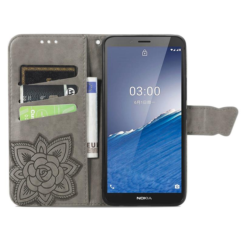 For Nokia C3 Butterfly Love Flower Embossed Leather Phone Case(Gray)