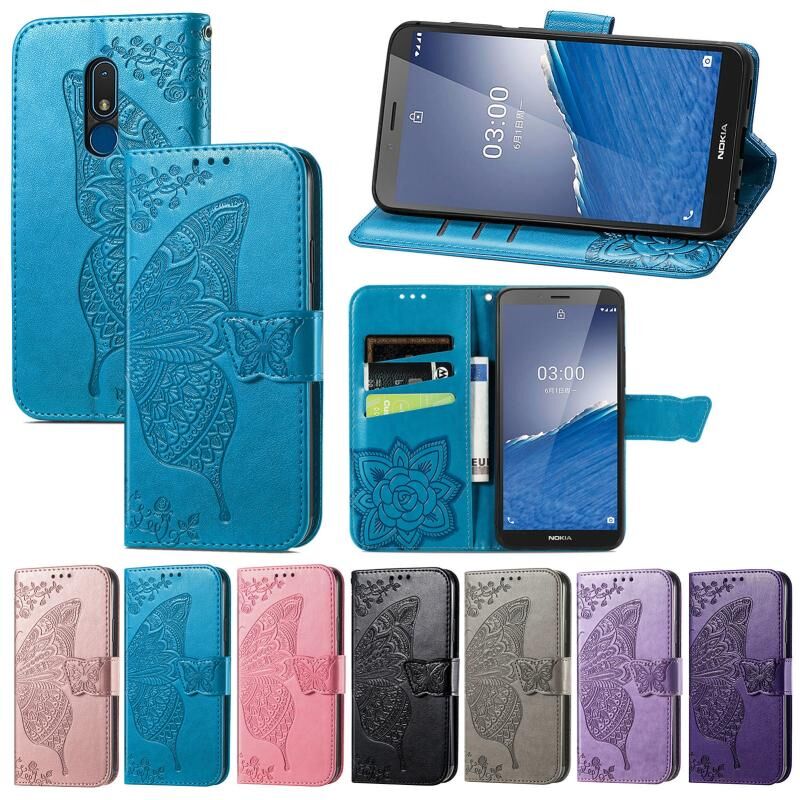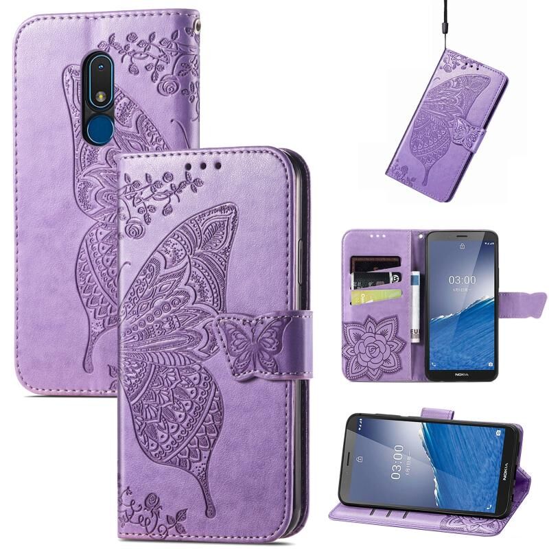 Θήκη τηλεφώνου από δέρμα με ανάγλυφο σχέδιο πεταλούδας και λουλουδιών για Nokia C3 (Λεβάντα)