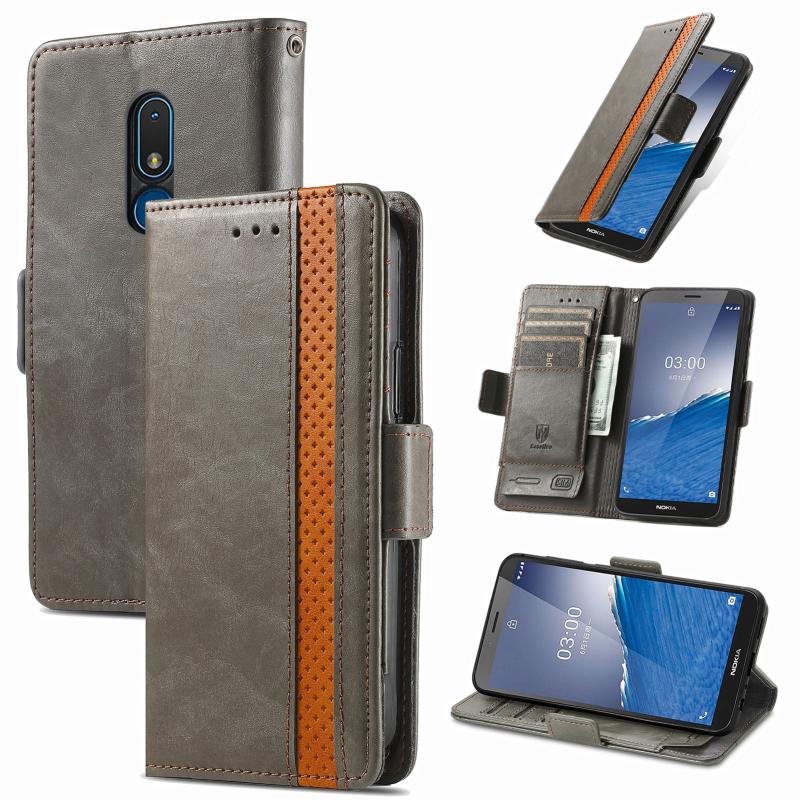 For Nokia C3 CaseNeo Splicing Dual Magnetic Buckle Leather Phone Case(Gray)