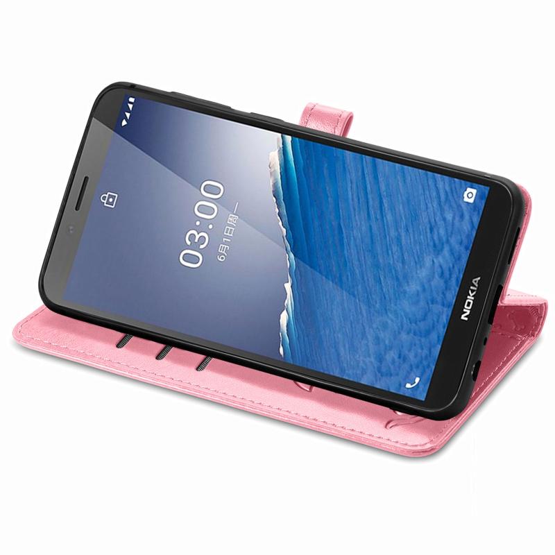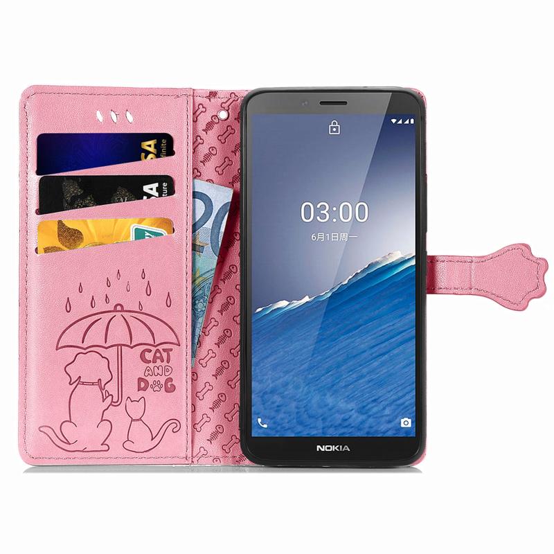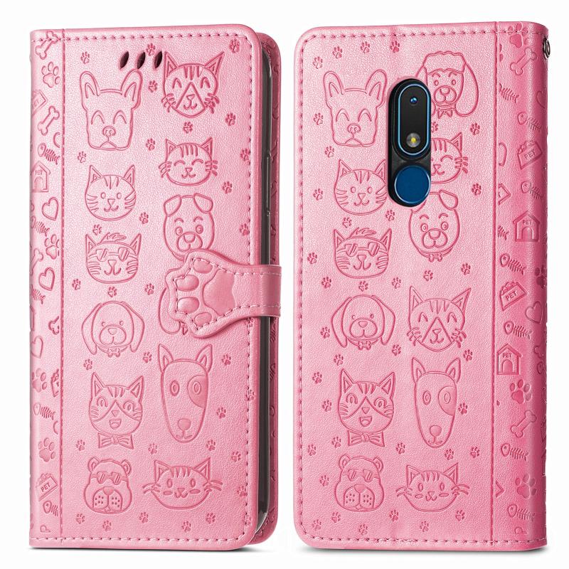 For Nokia C3 Cute Cat and Dog Embossed Flip Leather Phone Case(Pink)