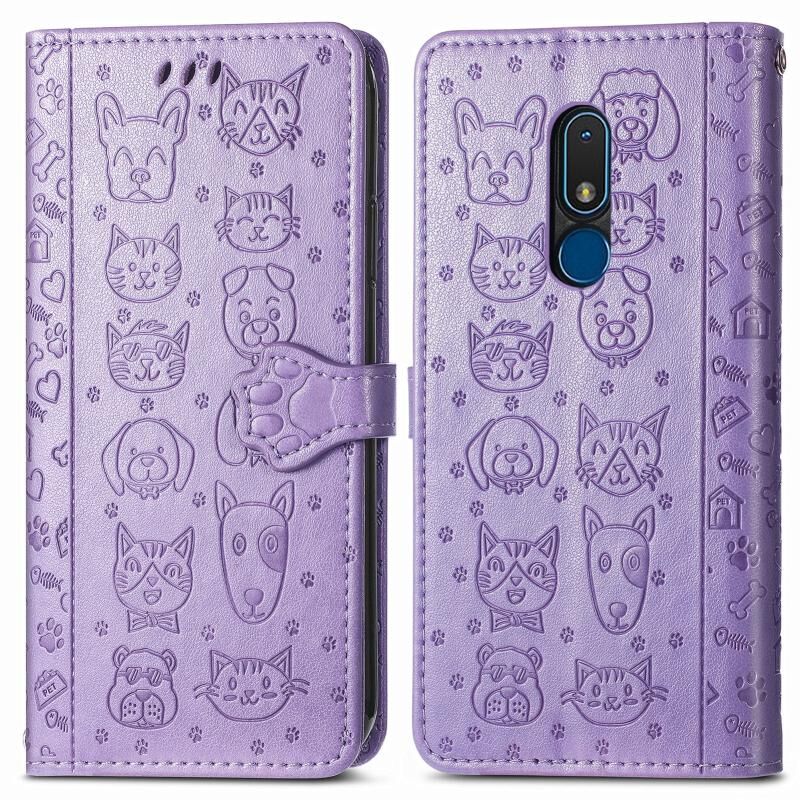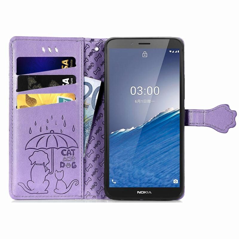 Θήκη τηλεφώνου από δέρμα με ανάγλυφα σχέδια χαριτωμένων γάτας και σκύλου για Nokia C3 (Μπλε)
