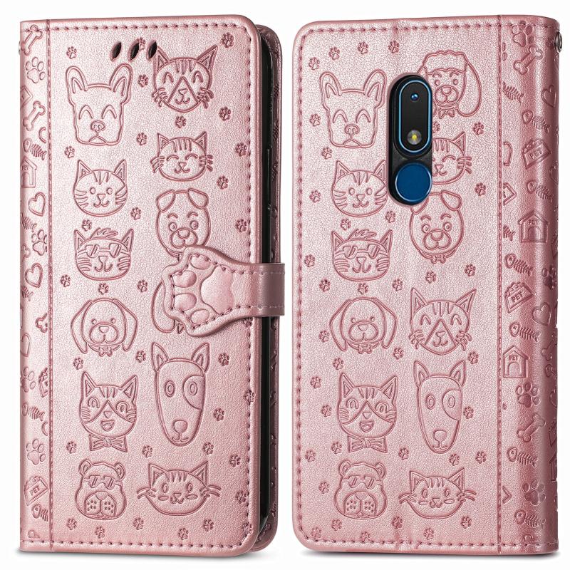For Nokia C3 Cute Cat and Dog Embossed Flip Leather Phone Case(Rose Gold)