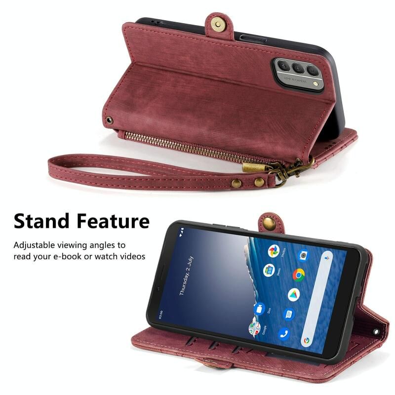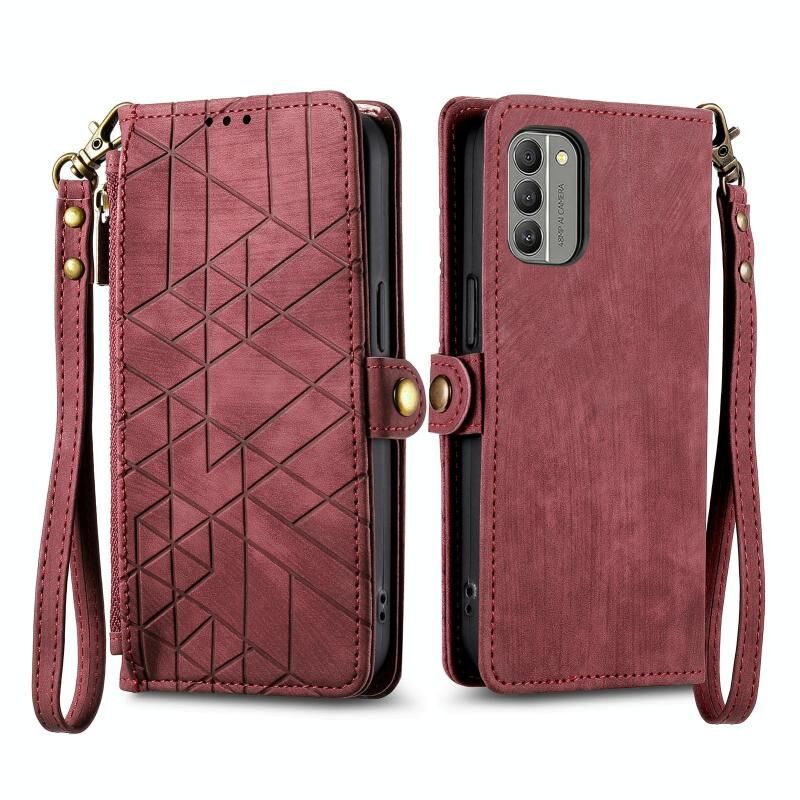 Για Nokia C3 Γεωμετρικό φερμουάρ πορτοφόλι πλευρά πόρπη δερμάτινη θήκη τηλεφώνου (κόκκινο)