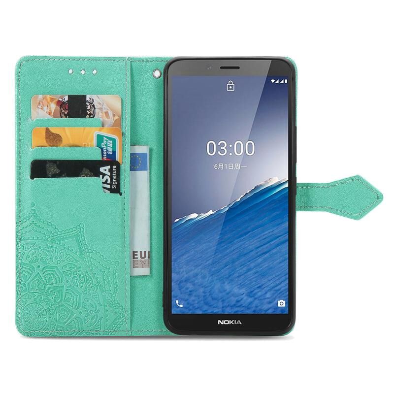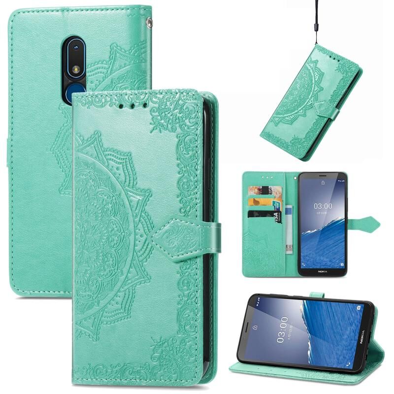 Για Nokia C3 Mandala λουλούδι ανάγλυφο δέρμα υπόθεση τηλεφώνου (πράσινο)