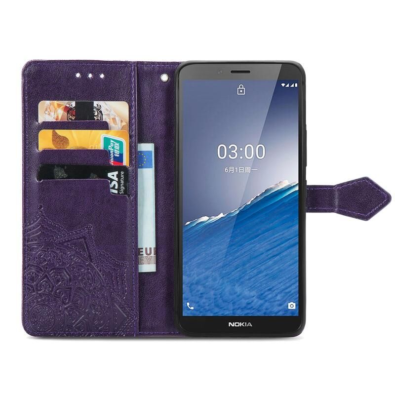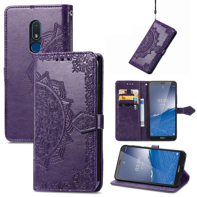 Για Nokia C3 Mandala λουλούδι ανάγλυφο δέρμα τηλέφωνο υπόθεση (μωβ)