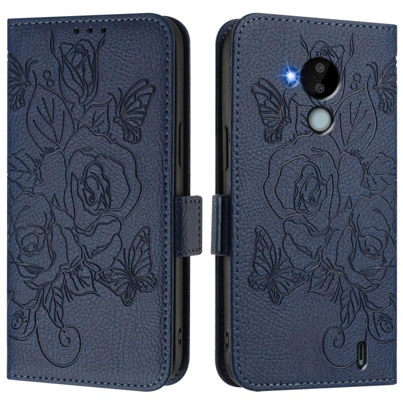 For Nokia C30 Embossed Rose RFID Anti-theft Leather Phone Case(Dark Blue)