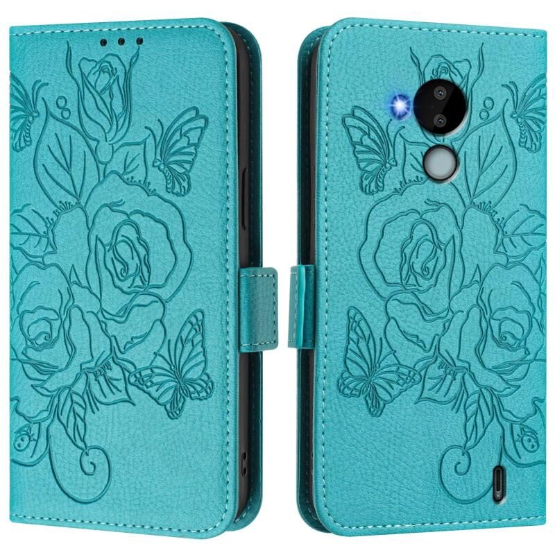 For Nokia C30 Embossed Rose RFID Anti-theft Leather Phone Case(Light Blue)