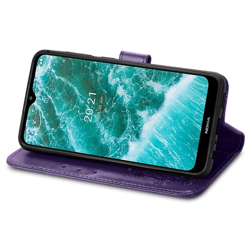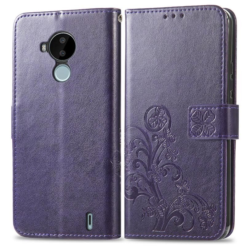 Για το Nokia C30 τετράφυλλο κούμπωμα ανάγλυφη δερμάτινη θήκη τηλεφώνου (μωβ)