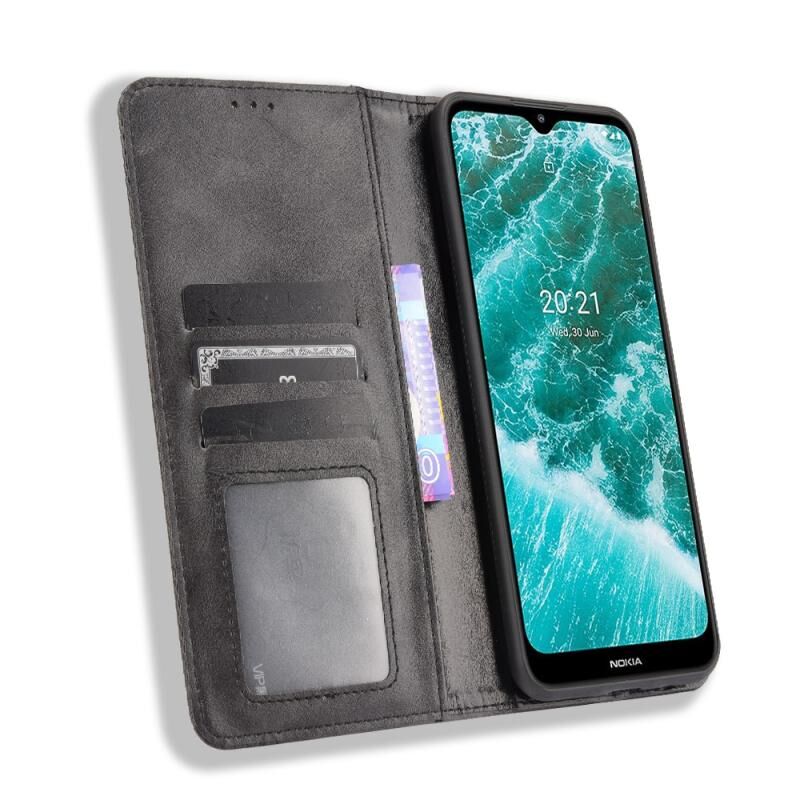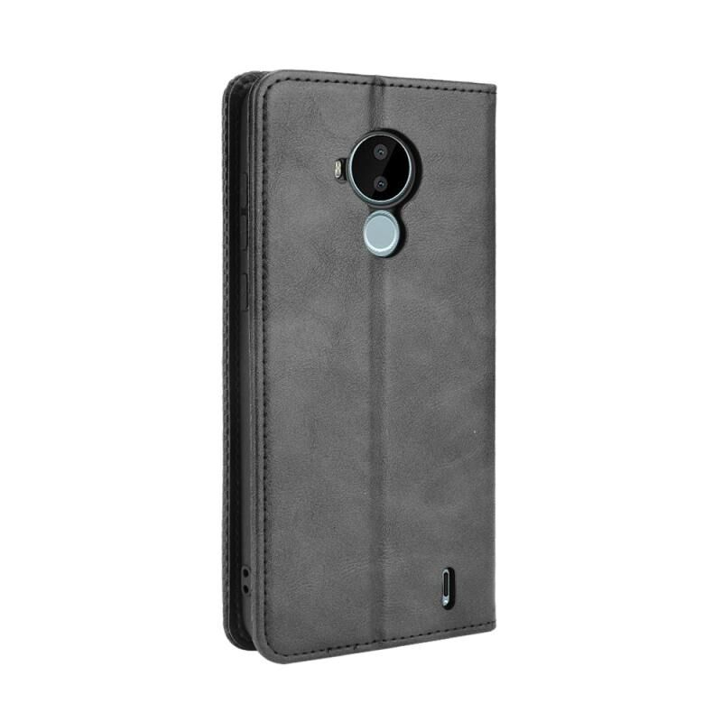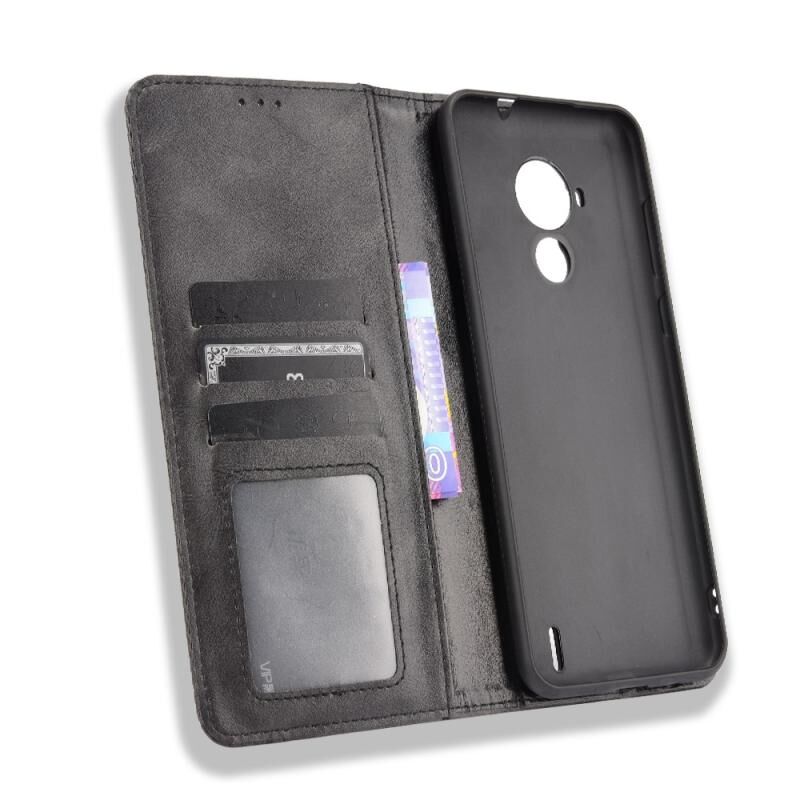 Για Nokia C30 Μαγνητική πόρπη Ρετρό τρελό άλογο υφή οριζόντια Flip δερμάτινη θήκη με υποδοχή & υποδοχές καρτών & πλαίσιο φωτογραφιών (μαύρο)