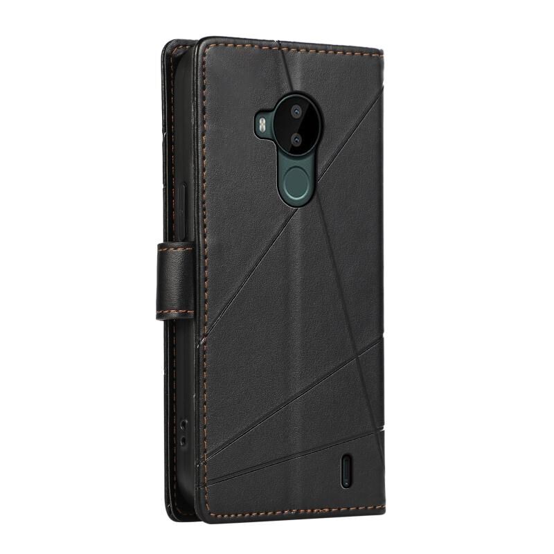 Θήκη τηλεφώνου για Nokia C30 PU με υφή γνήσιου δέρματος, ανάγλυφο σχέδιο (Μαύρο)