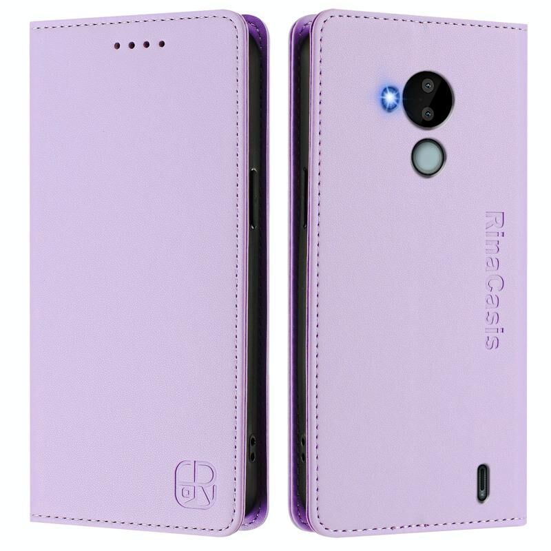 Θήκη τηλεφώνου από δέρμα με μαγνητική απορρόφηση και διπλή πτυχή για Nokia C30 RC01 (Μέντας Πράσινο)