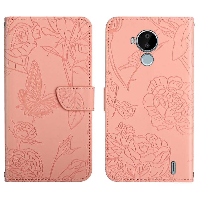 Θήκη τηλεφώνου από δέρμα με ανάγλυφο σχέδιο πεταλούδας και παιώνιας για Nokia C30 (Κόκκινο)