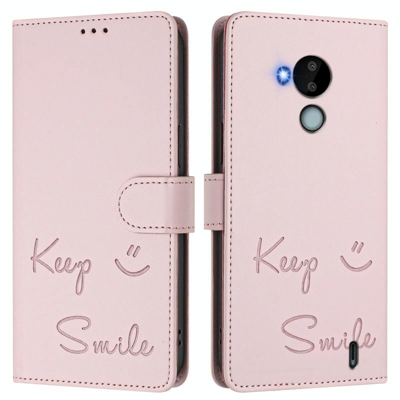 Για Nokia C30 Χαμόγελο ανάγλυφο RFID δερμάτινη θήκη τηλεφώνου (ροζ)
