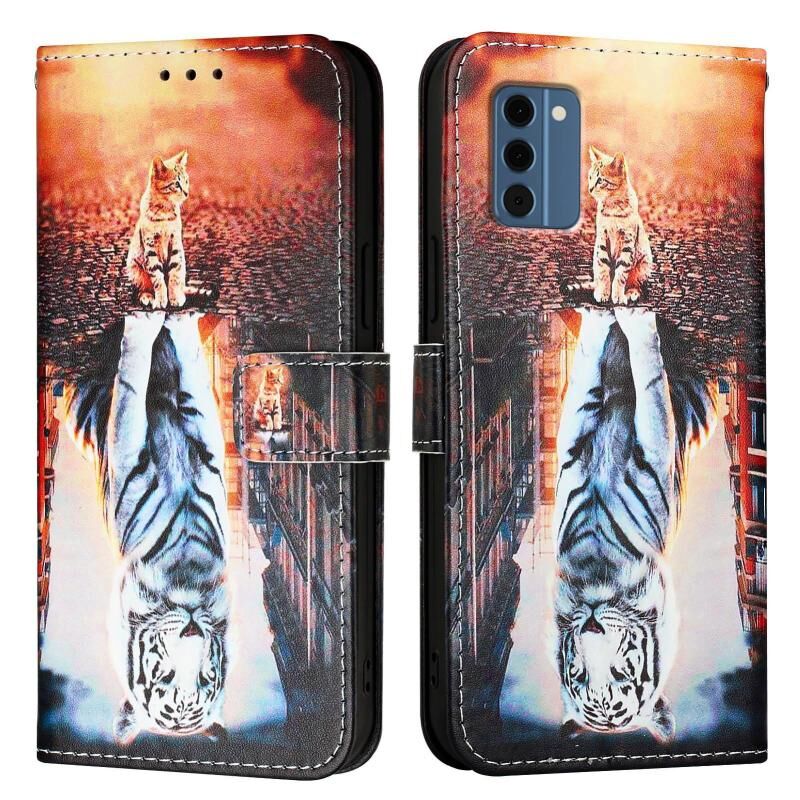 Θήκη τηλεφώνου από δέρμα με απλή ύφανση για Nokia C300 με έγχρωμο σχέδιο (Γάτες και Τίγρεις)