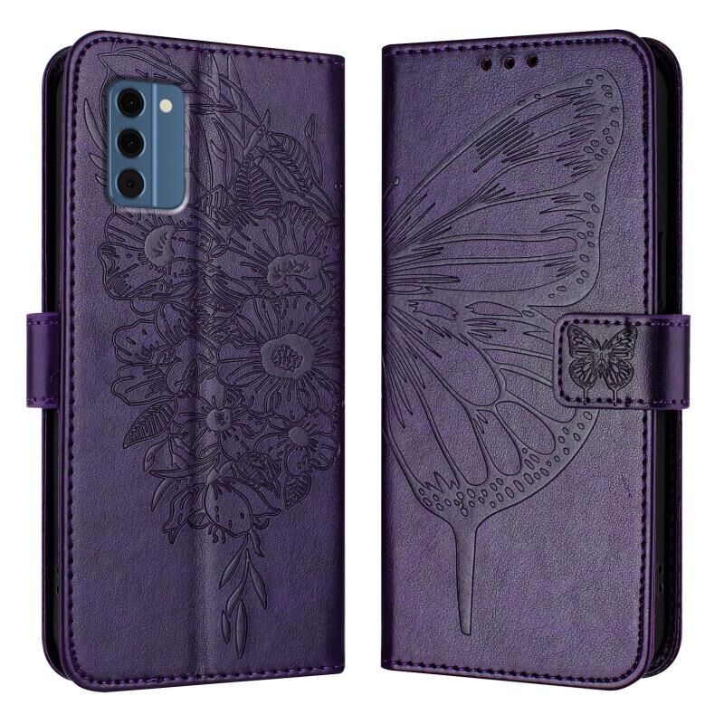 Για Nokia C300 ανάγλυφη πεταλούδα δερμάτινη θήκη τηλεφώνου (σκούρο μοβ)