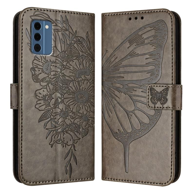 Για το Nokia C300 ανάγλυφη πεταλούδα δερμάτινη θήκη τηλεφώνου (γκρι)