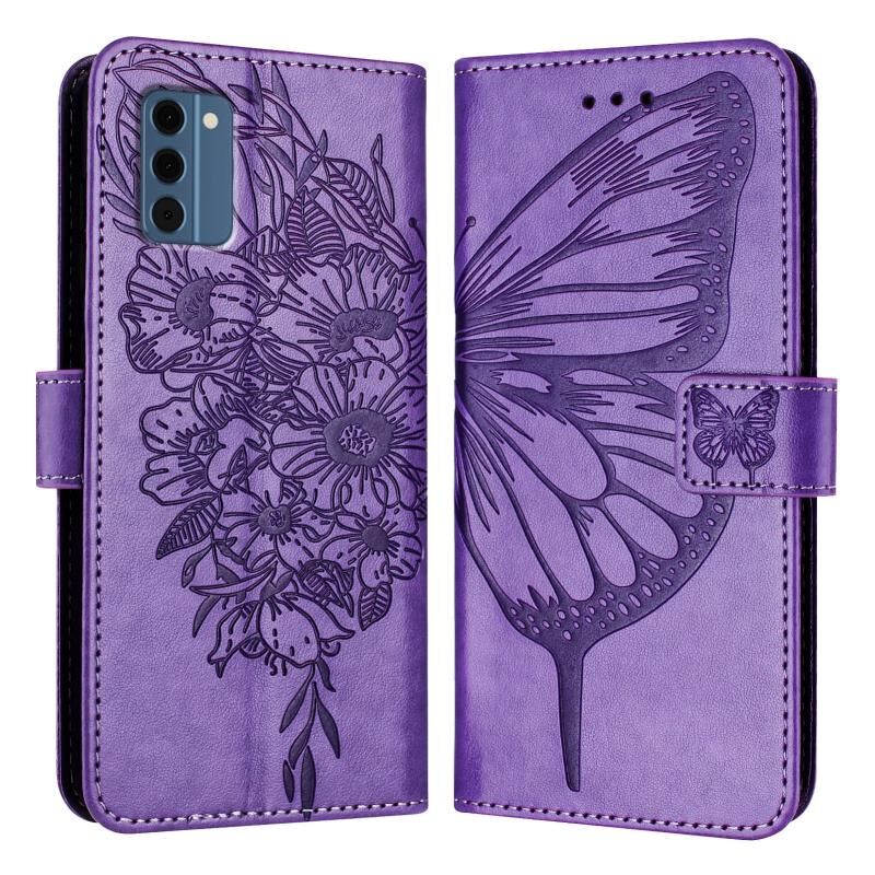 Για Nokia C300 ανάγλυφη πεταλούδα δερμάτινη θήκη τηλεφώνου (ανοιχτό μοβ)