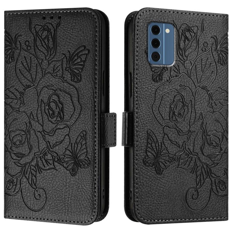 For Nokia C300 Embossed Rose RFID Anti-theft Leather Phone Case(Black)