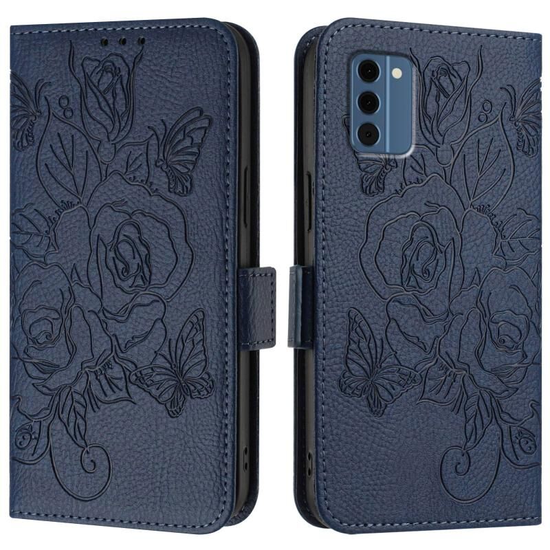 For Nokia C300 Embossed Rose RFID Anti-theft Leather Phone Case(Dark Blue)