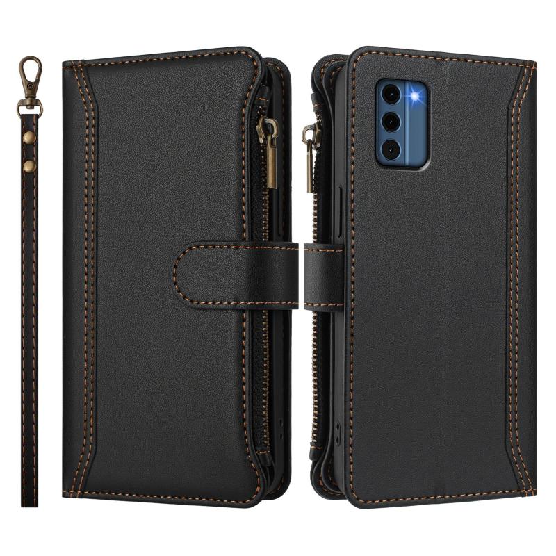 For Nokia C300 Magnetic Closure 9 Card Slots Zipper Leather Case with Hand Strap(Black)