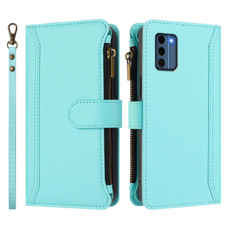 For Nokia C300 Magnetic Closure 9 Card Slots Zipper Leather Case with Hand Strap(Mint Green)