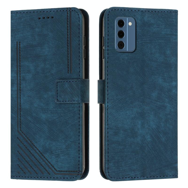 For Nokia C300 Skin Feel Stripe Pattern Leather Phone Case with Lanyard(Blue)
