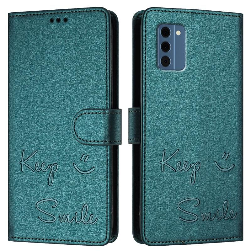 Για Nokia C300 Χαμόγελο ανάγλυφο RFID δερμάτινη θήκη τηλεφώνου (Πράσινο παγώνι)