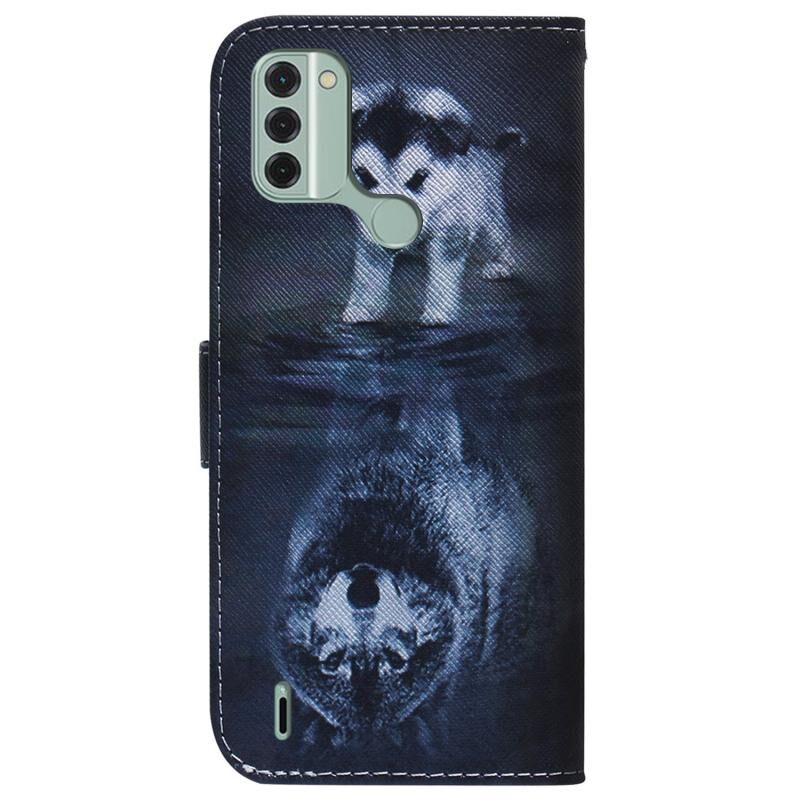 For Nokia C31 Coloured Drawing Flip Leather Phone Case(Wolf and Dog)