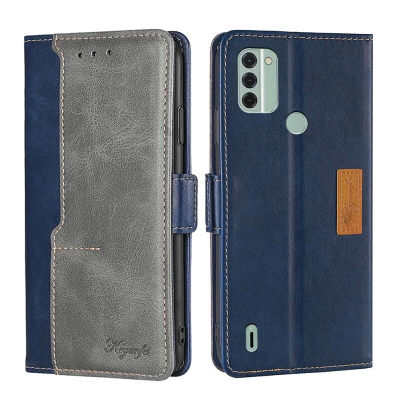 Για Nokia C31 Αντίθετο χρώμα πλευρά πόρπη δερμάτινη θήκη τηλεφώνου (μπλε + γκρι)