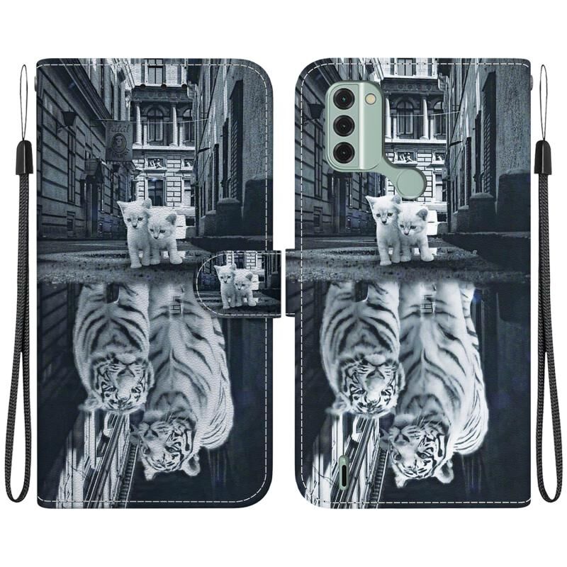 Θήκη τηλεφώνου Nokia C31 με κρυστάλλινη υφή, πολύχρωμο σχέδιο από δέρμα (Αντανάκλαση Γάτας Τίγρης)