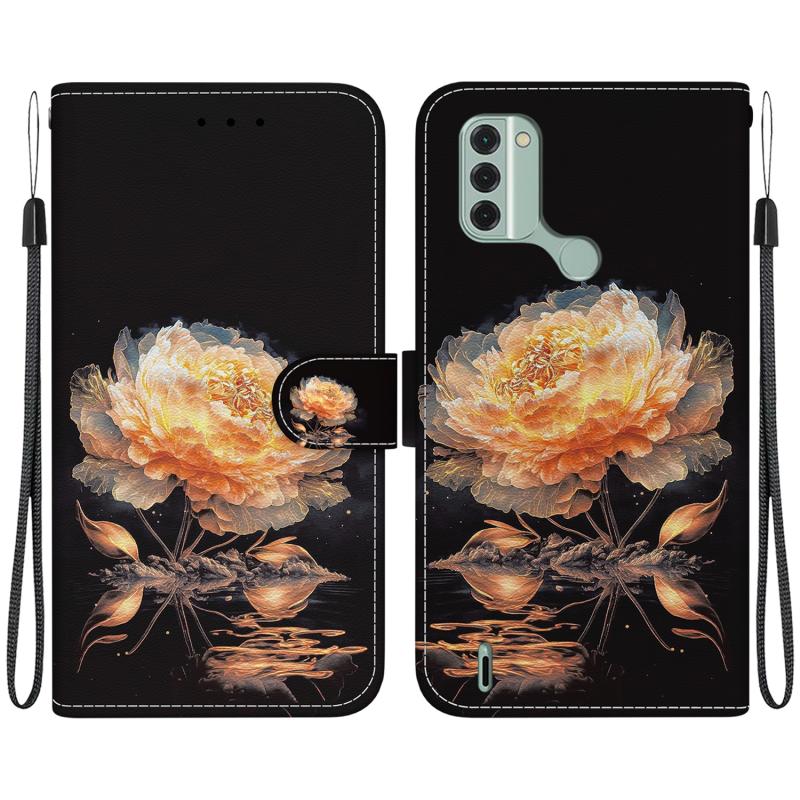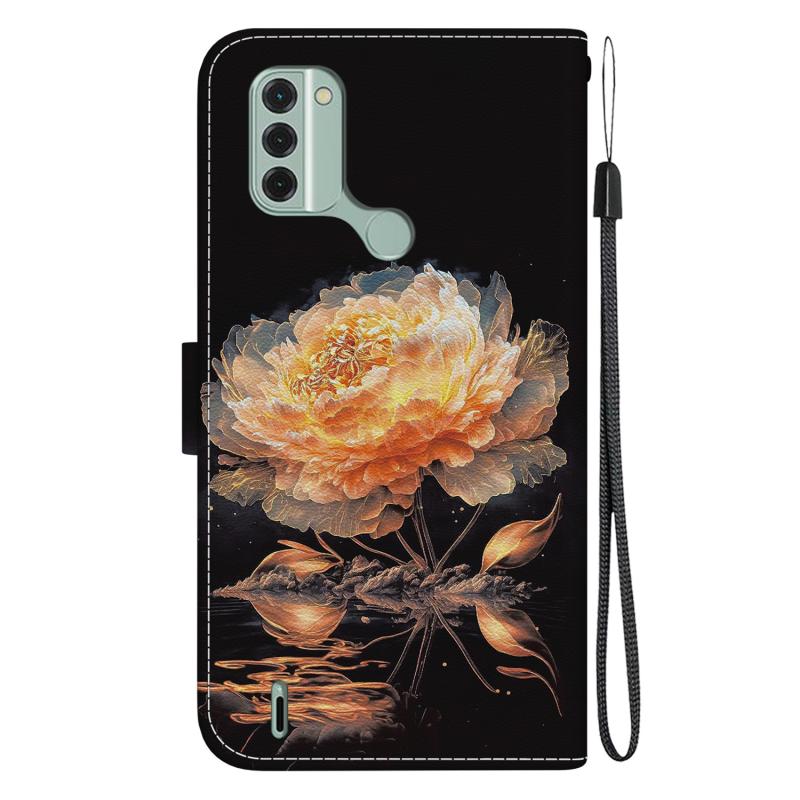 For Nokia C31 Crystal Texture Colored Drawing Leather Phone Case(Gold Peony)